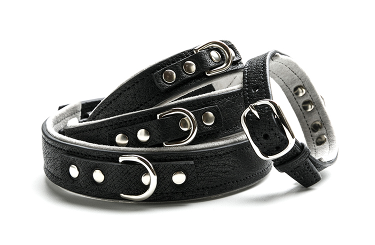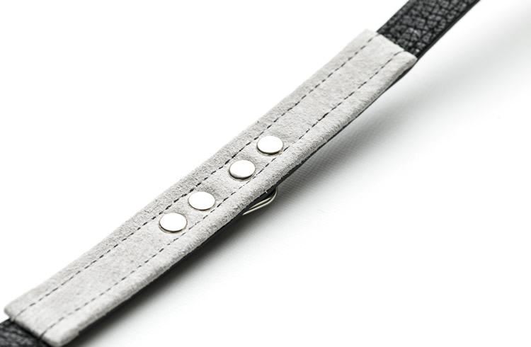 裏側にはピッグスキンを使用し2枚仕立てで作り上げ、犬の首に優しい作りです。